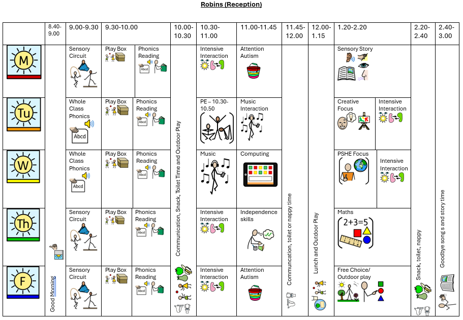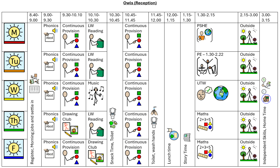 We are so lucky to have two huge rooms for all of our Reception children this year. During our learning time in the morning, we are split into two groups, the Owls and the Robins.